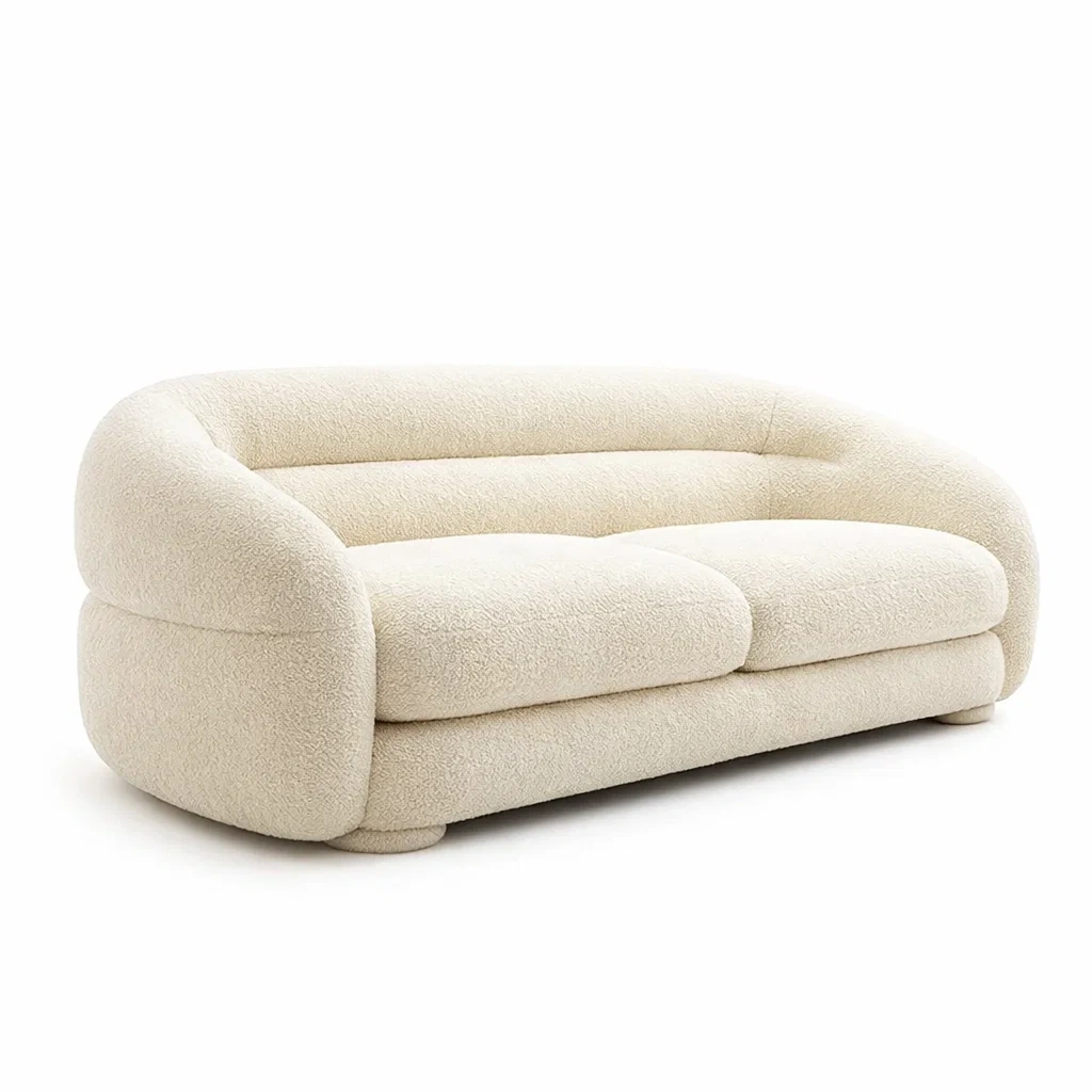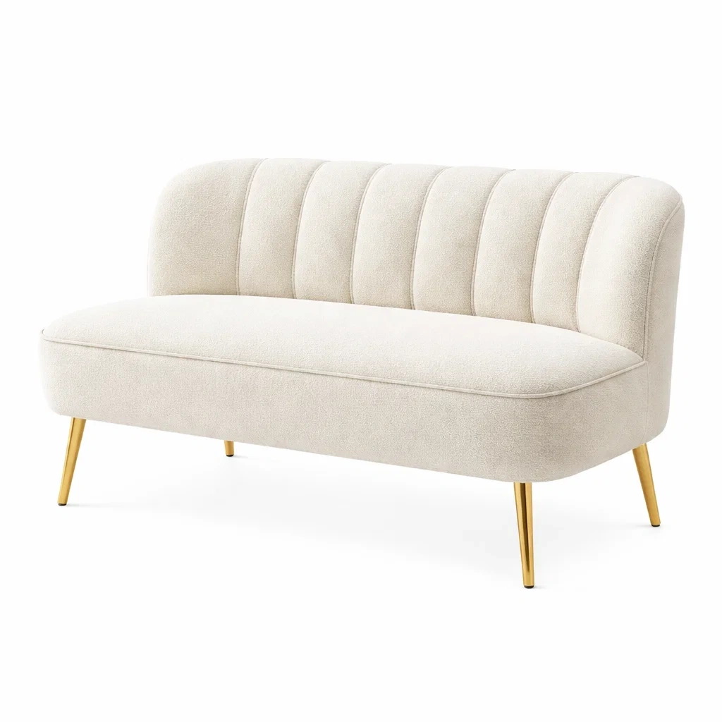 Canapé 2 places en tissu bouclé avec pieds en métal