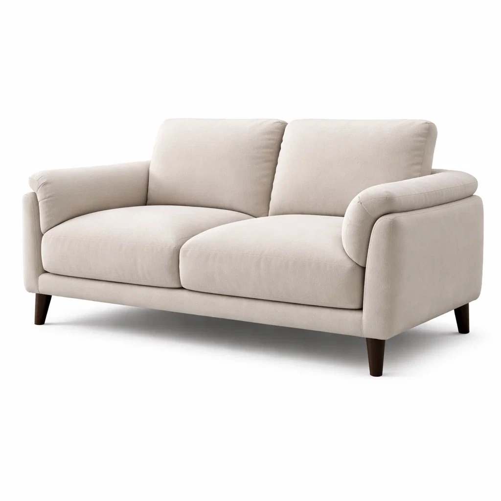Canapé 2 places en tissu beige avec pieds en bois de hêtre