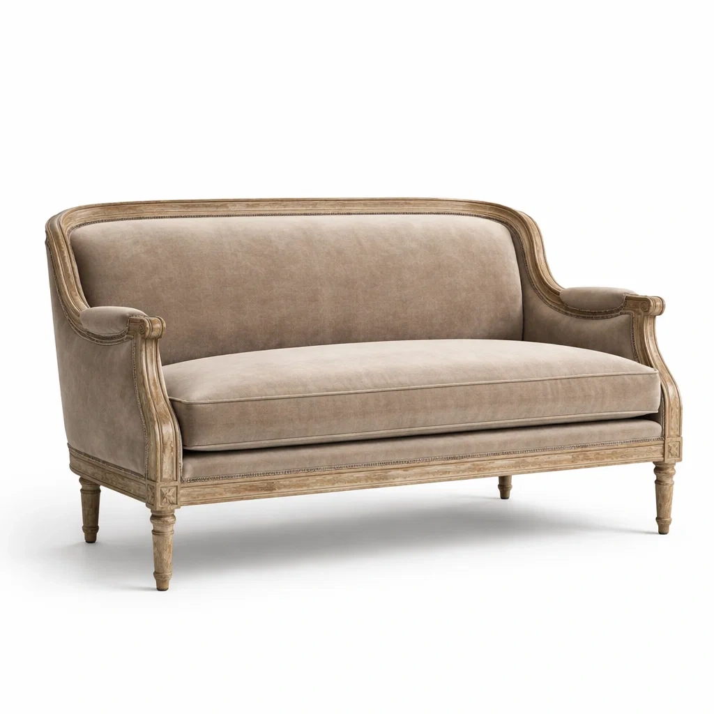 Canapé deux places en velours beige