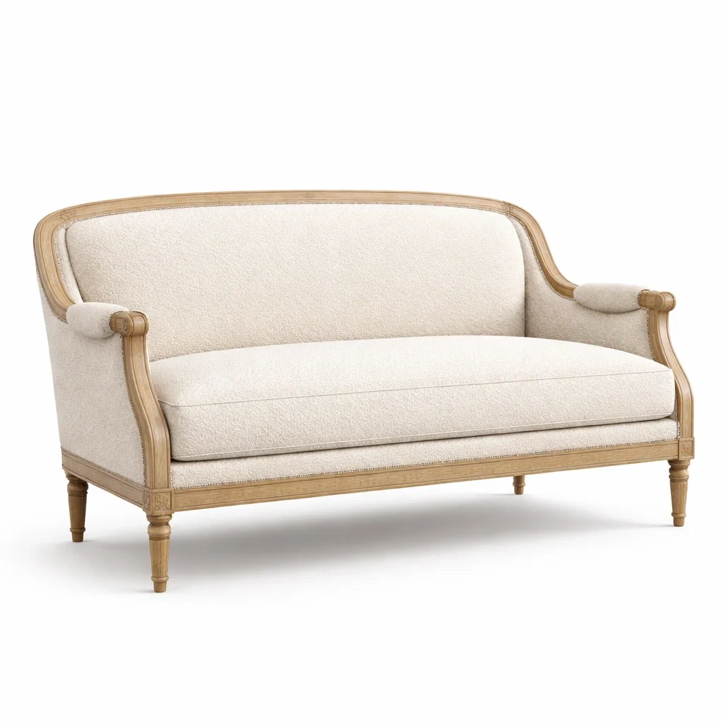 Canapé deux places en chêne et tissu beige