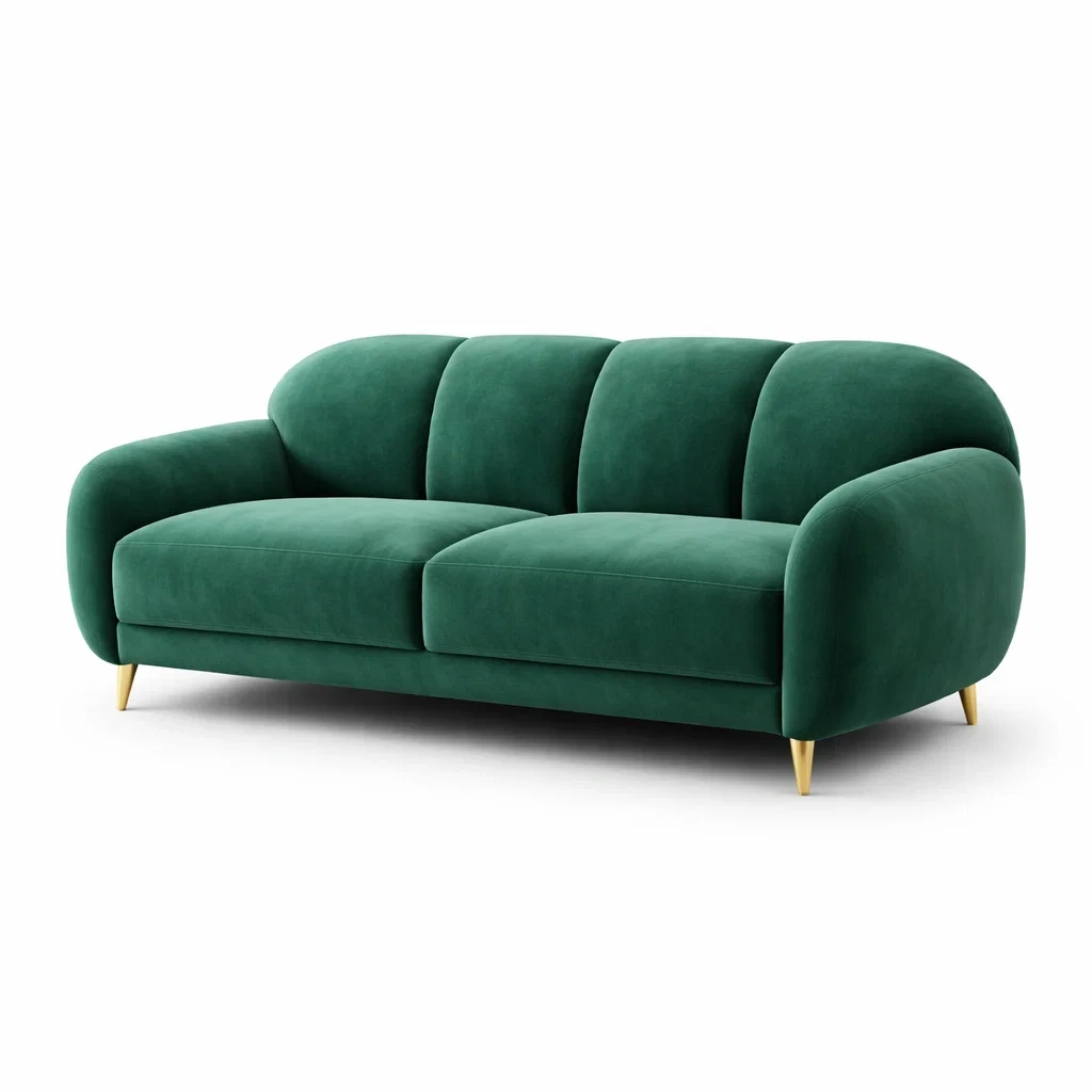 Ce canapé dispose d'une structure en bois massif et de pieds en métal. Le rembourrage est en mousse polyuréthane recouverte de velours en polyester. Sa couleur verte s'intègre facilement à tout intérieur.